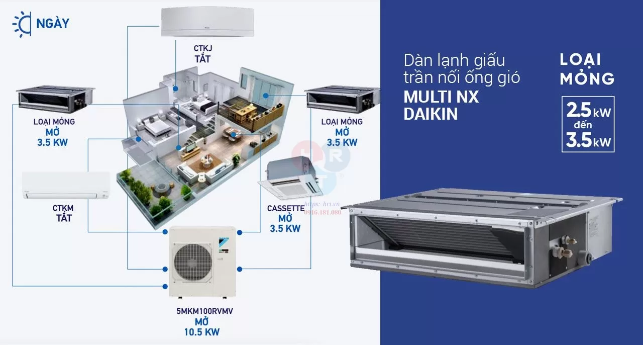Trả lời: Đây là ứng dụng tuyệt vời nhất của dòng máy này. Một máy công suất lớn có thể chia ra nhiều cửa gió chạy dài khắp không gian khách và bếp, đảm bảo độ lạnh đồng đều mà không làm mất đi vẻ đẹp của kiến trúc trần.