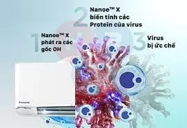 Công nghệ Nanoe™ X giải phóng hàng tỷ gốc OH (hydroxyl) bọc trong nước vào luồng không khí. Các gốc tự do này có khả năng ức chế hoạt động của các loại vi khuẩn, nấm mốc và các tác nhân gây dị ứng. Đặc biệt, các nghiên cứu thực nghiệm đã chứng minh Nanoe™ X có khả năng ức chế các chủng virus cúm và vi khuẩn có hại bám dính trên bề mặt đồ vật.