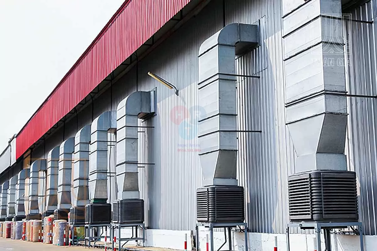 Cơ chế: Không khí nóng đi qua tấm làm mát được làm ướt, nhiệt độ sẽ giảm xuống từ 5°C đến 10°C trước khi đưa vào xưởng.