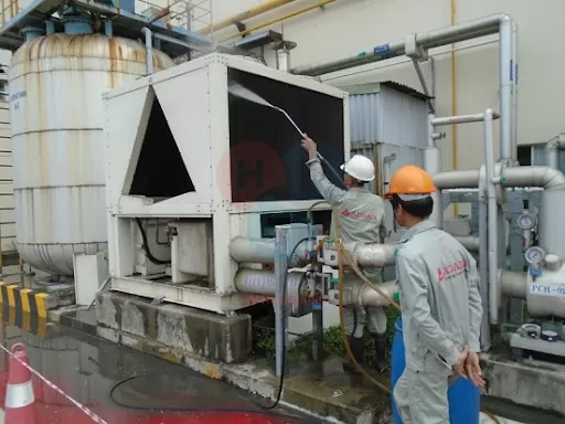 Vệ sinh định kỳ: Cần vệ sinh tháp giải nhiệt, thông rửa dàn ngưng và dàn bay hơi định kỳ 6 tháng một lần để loại bỏ bùn đất và rêu mốc.