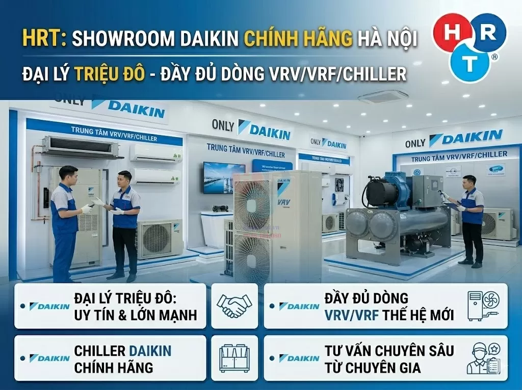 HRT – Showroom Daikin chính hãng tại Hà Nội với 659+ sản phẩm, tư vấn kỹ thuật chuyên sâu bởi kỹ sư được đào tạo trực tiếp từ Daikin. Đến trực tiếp hoặc gọi 0916 181 080 để được tư vấn miễn phí ngay hôm nay.